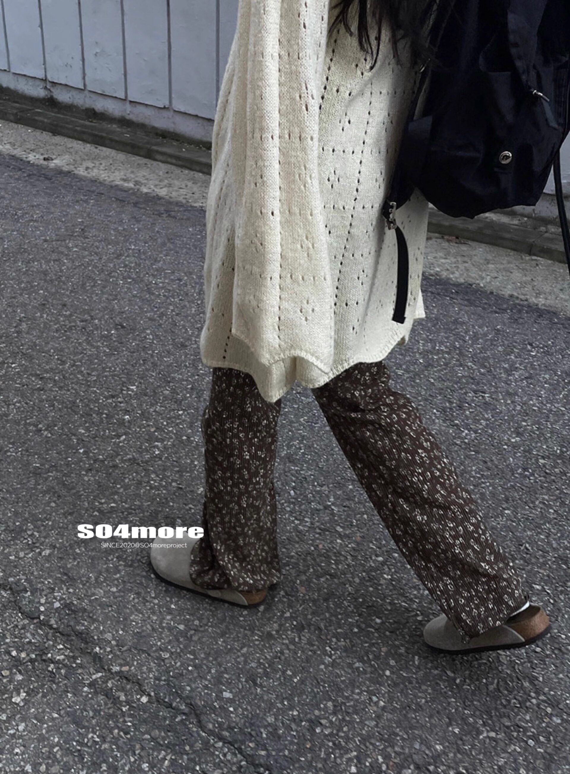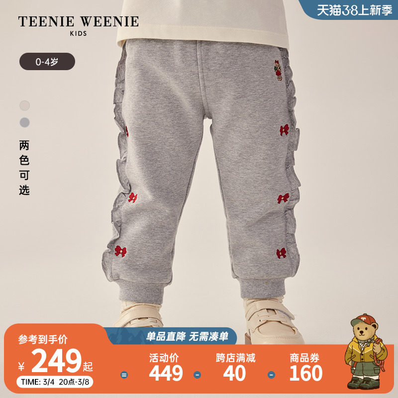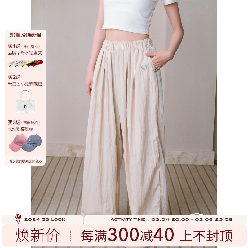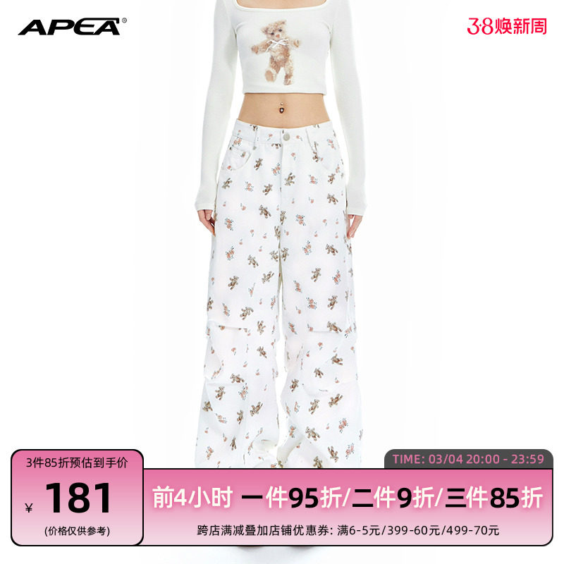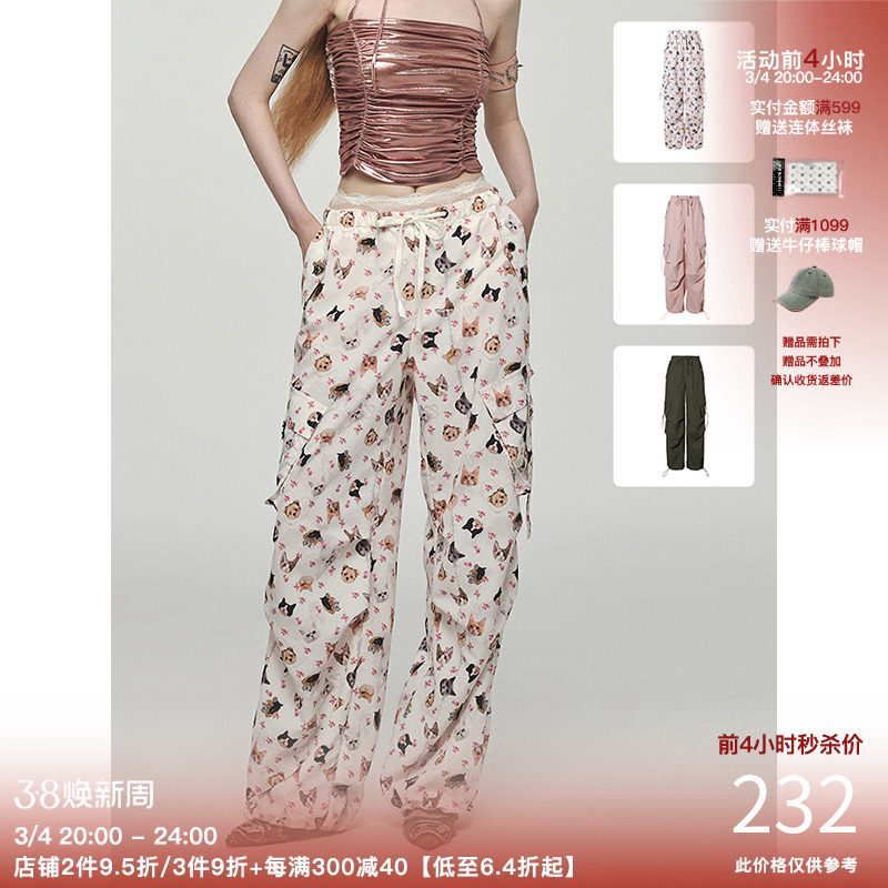 APEA小熊碎花褶皱抽绳束脚裤子女2023新款Miu系宽松阔腿工装长裤