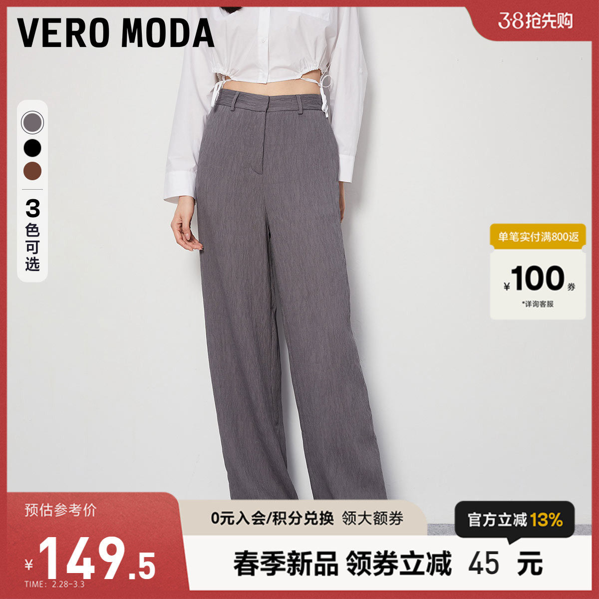 【格雷系垂顺褶皱裤】Vero Moda休闲裤2023秋款肌理感高腰长裤女