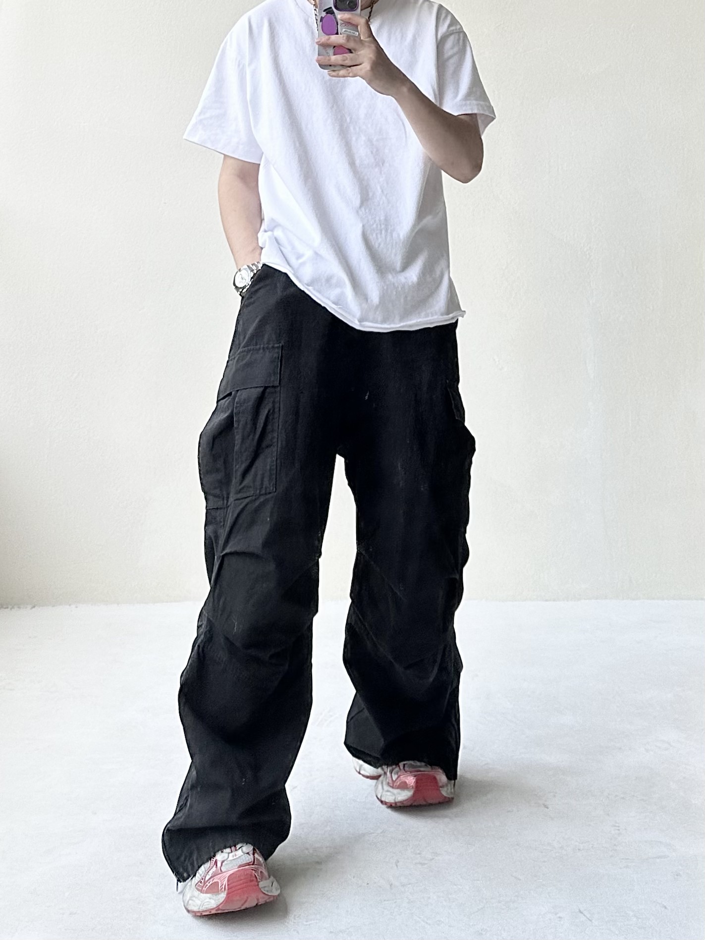 NONNOD巴黎平替Pulled Cargo暴风雪褶皱侧拉链宽松工装口袋长裤
