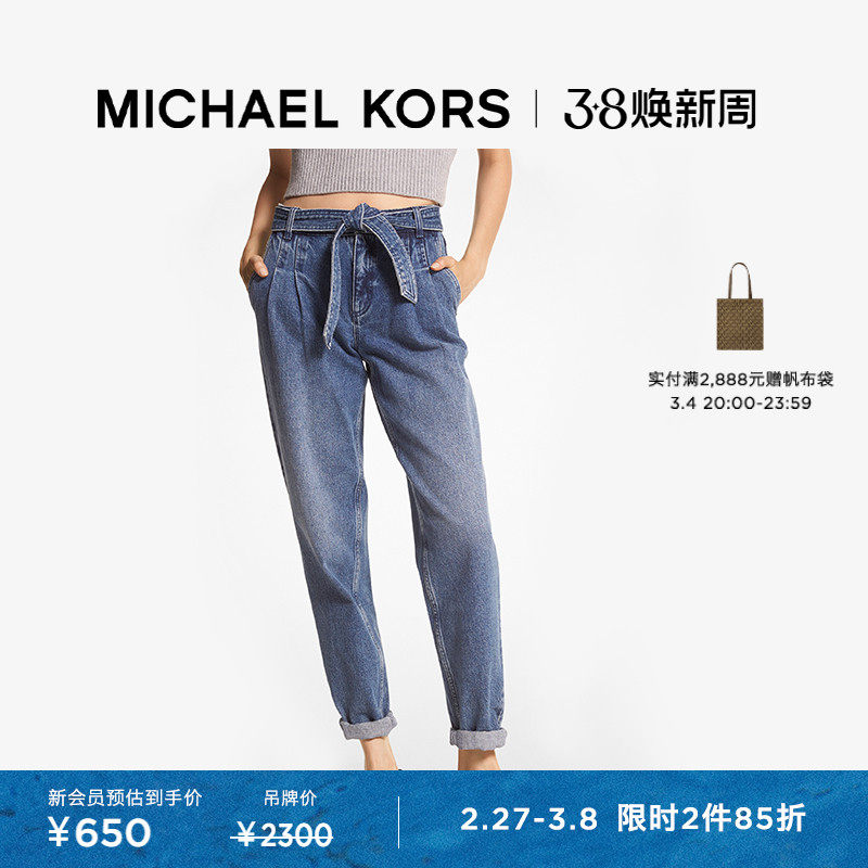 【2件85折】MICHAEL KORS 女士高腰褶皱宽松牛仔裤 含腰带