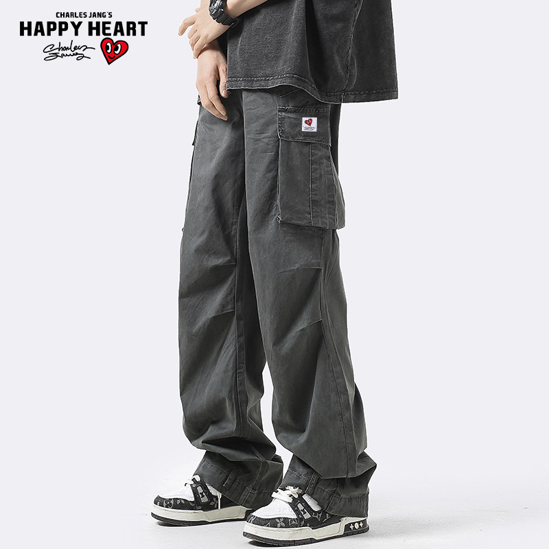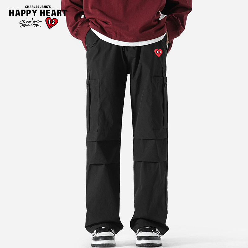 查尔斯桃心 多口袋冲锋裤男2024春季新款褶皱防风防水伞兵工装裤
