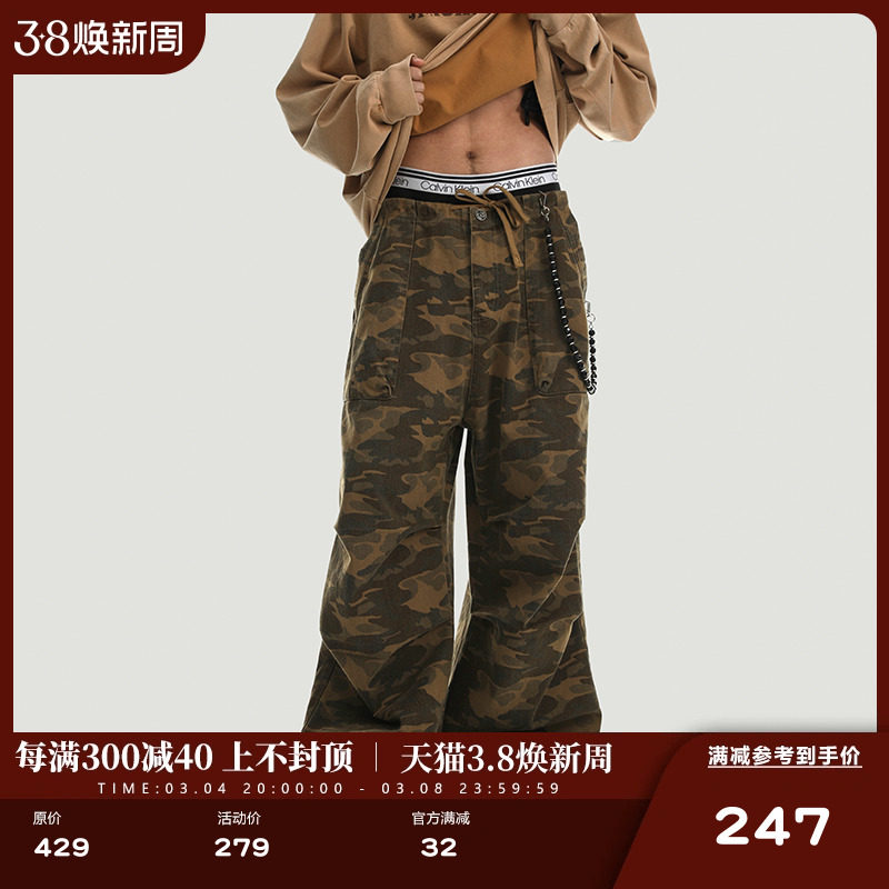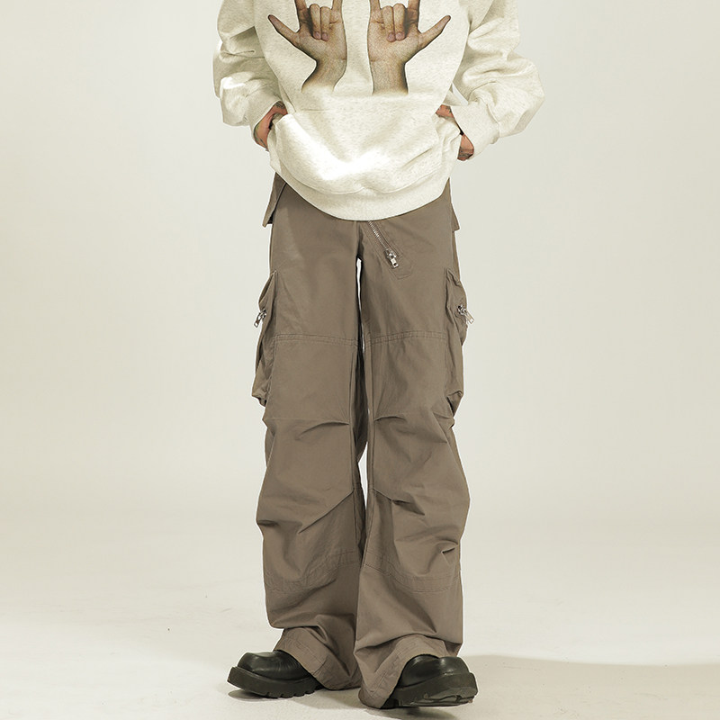 A carton美式高街多口袋设计感工装裤男廊形褶皱宽松阔腿休闲裤潮