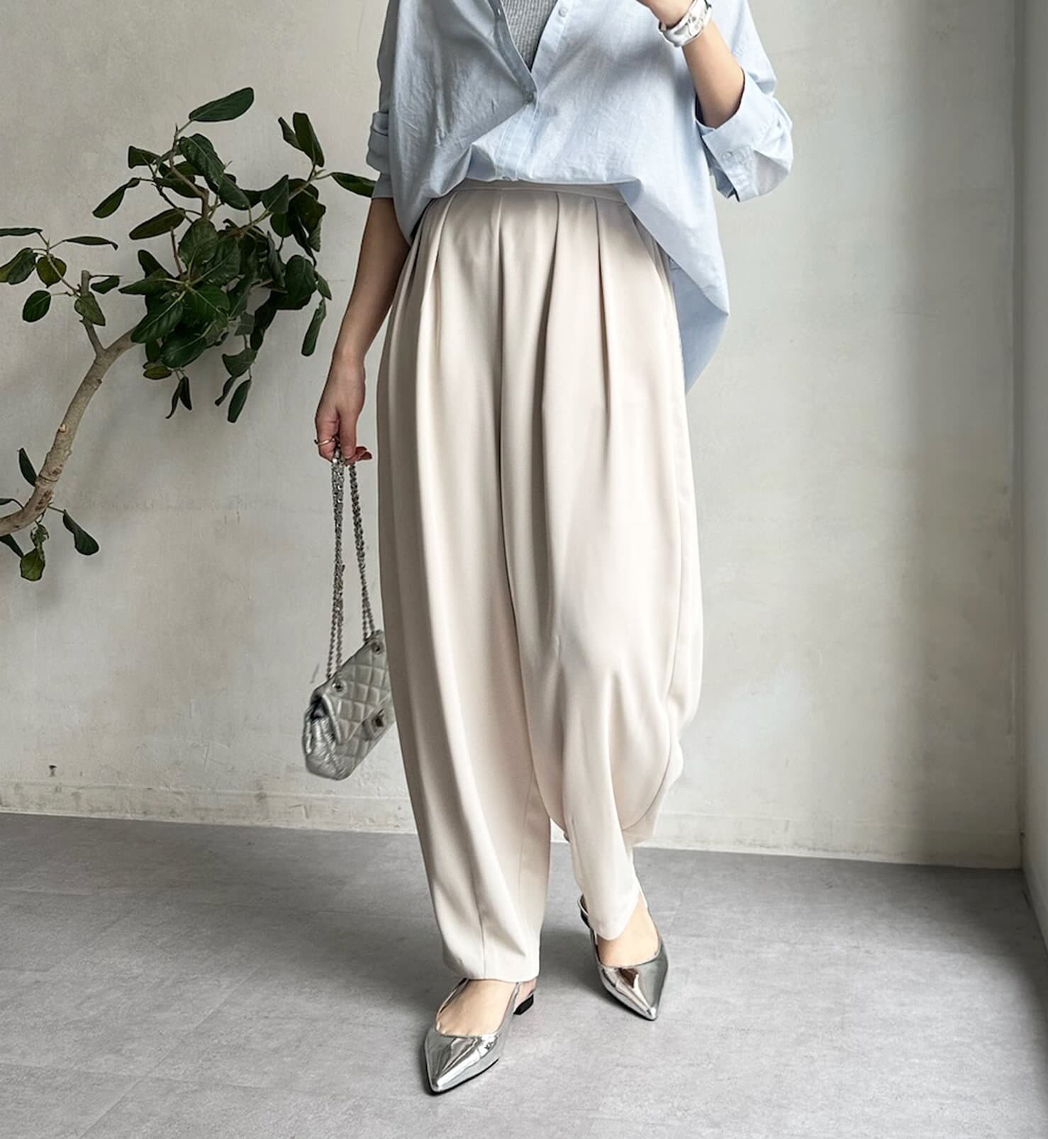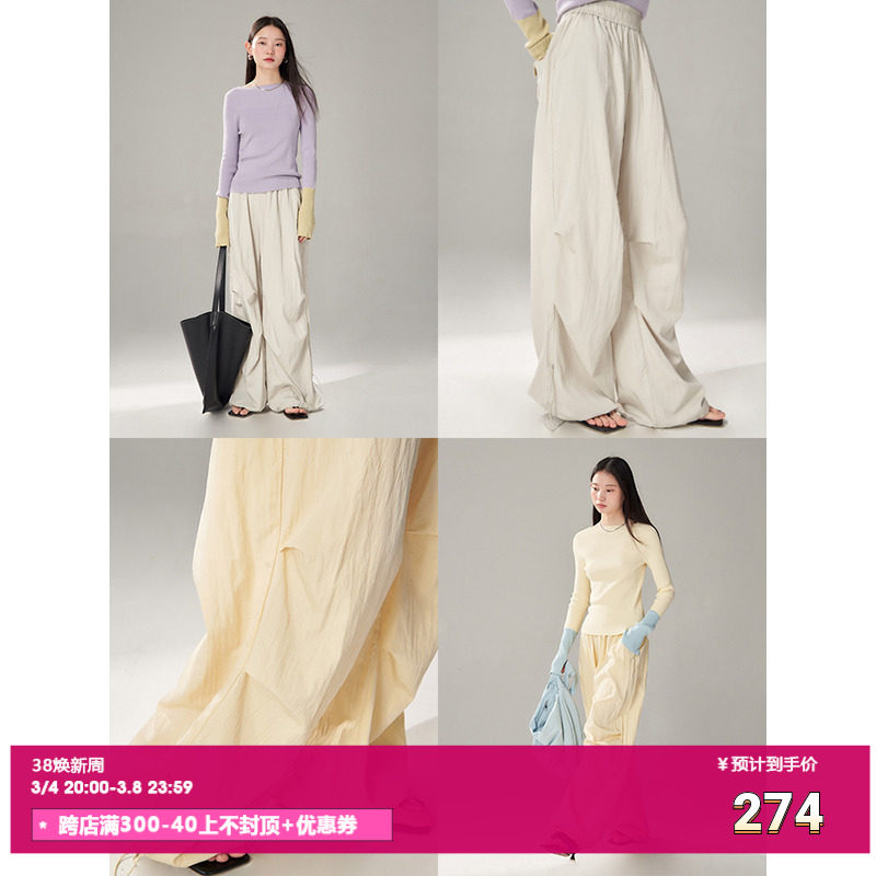 24SS日系OMS松紧高腰褶皱设计感锦棉凉感显瘦休闲气球香蕉长裤