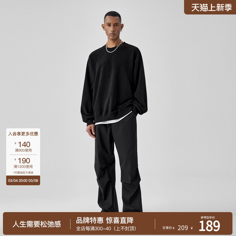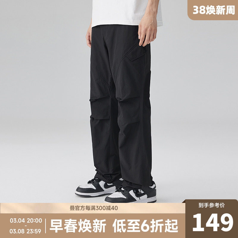 柜399 春季新品男装褶皱面料宽松阔腿束脚休闲长款简约休闲直筒裤