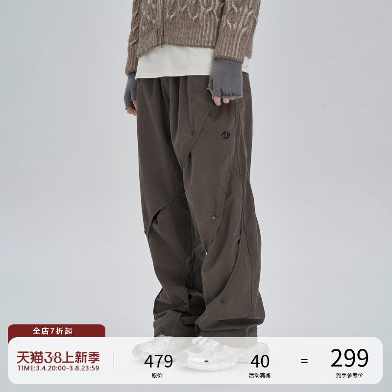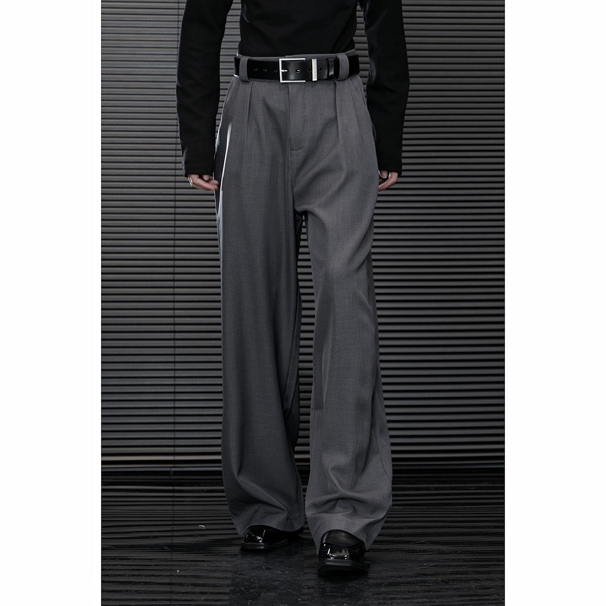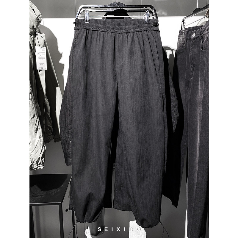DpaceX短句世录2024春季新款褶皱设计垂感西裤男宽松休闲长裤