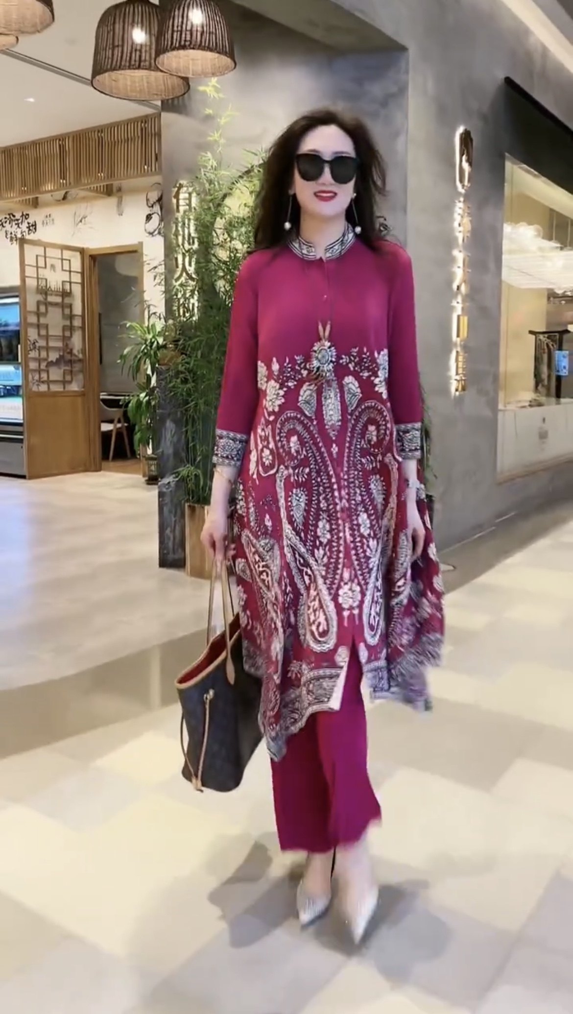 紫色百褶阔腿裤女夏季冰丝薄款凉凉裤防晒九分裤休闲垂感褶皱裤子