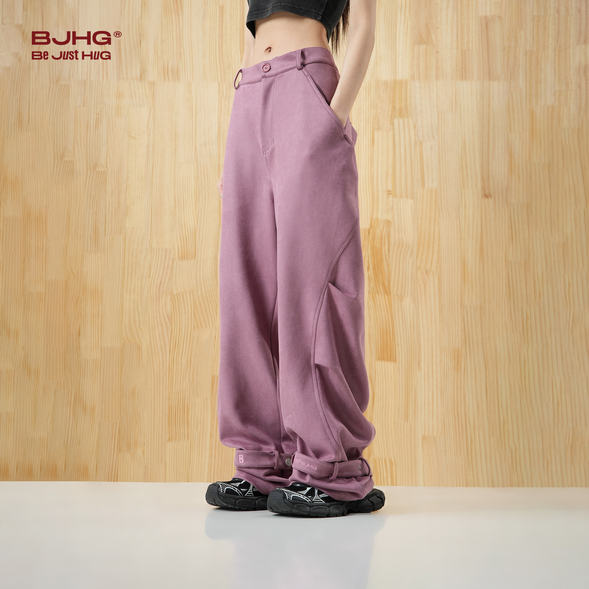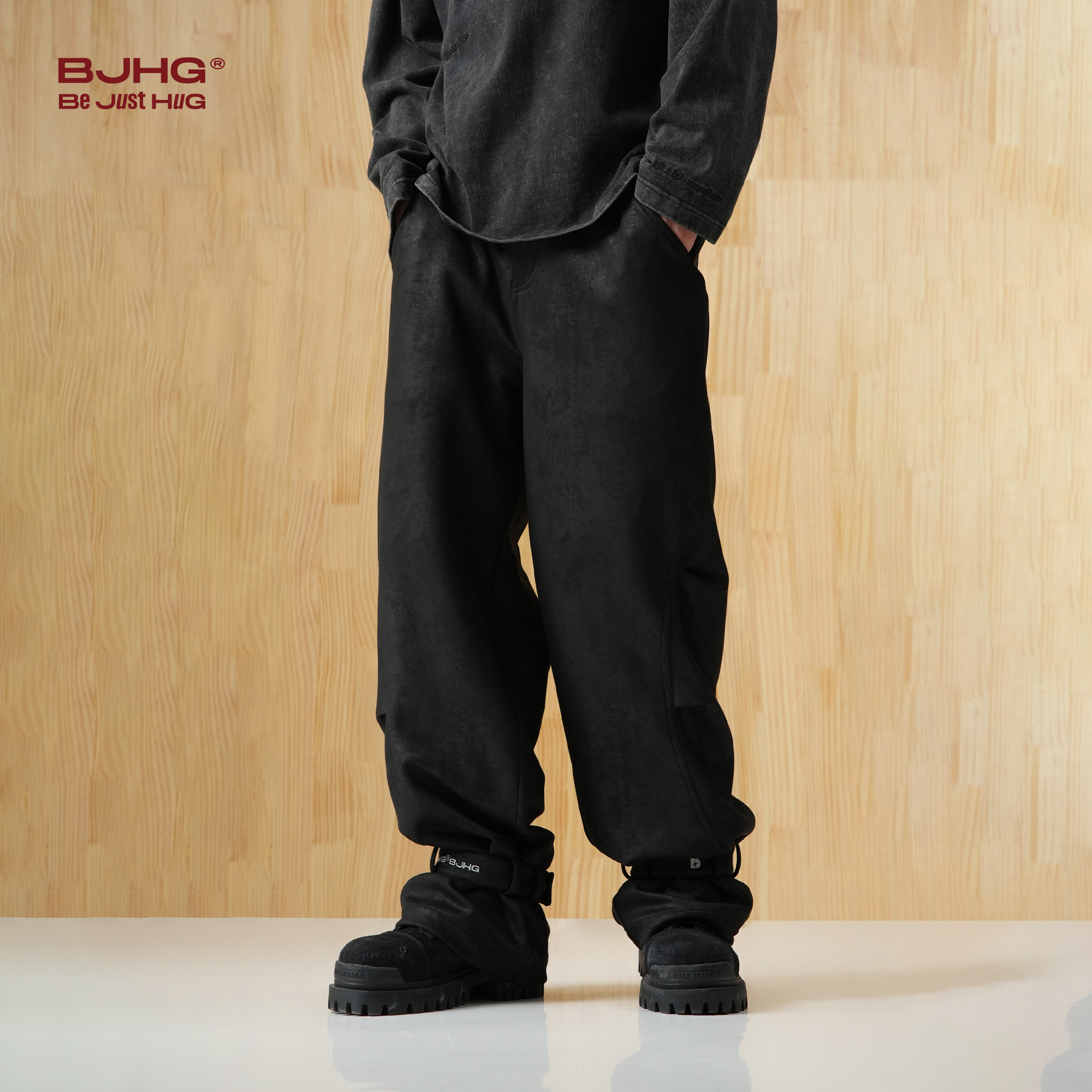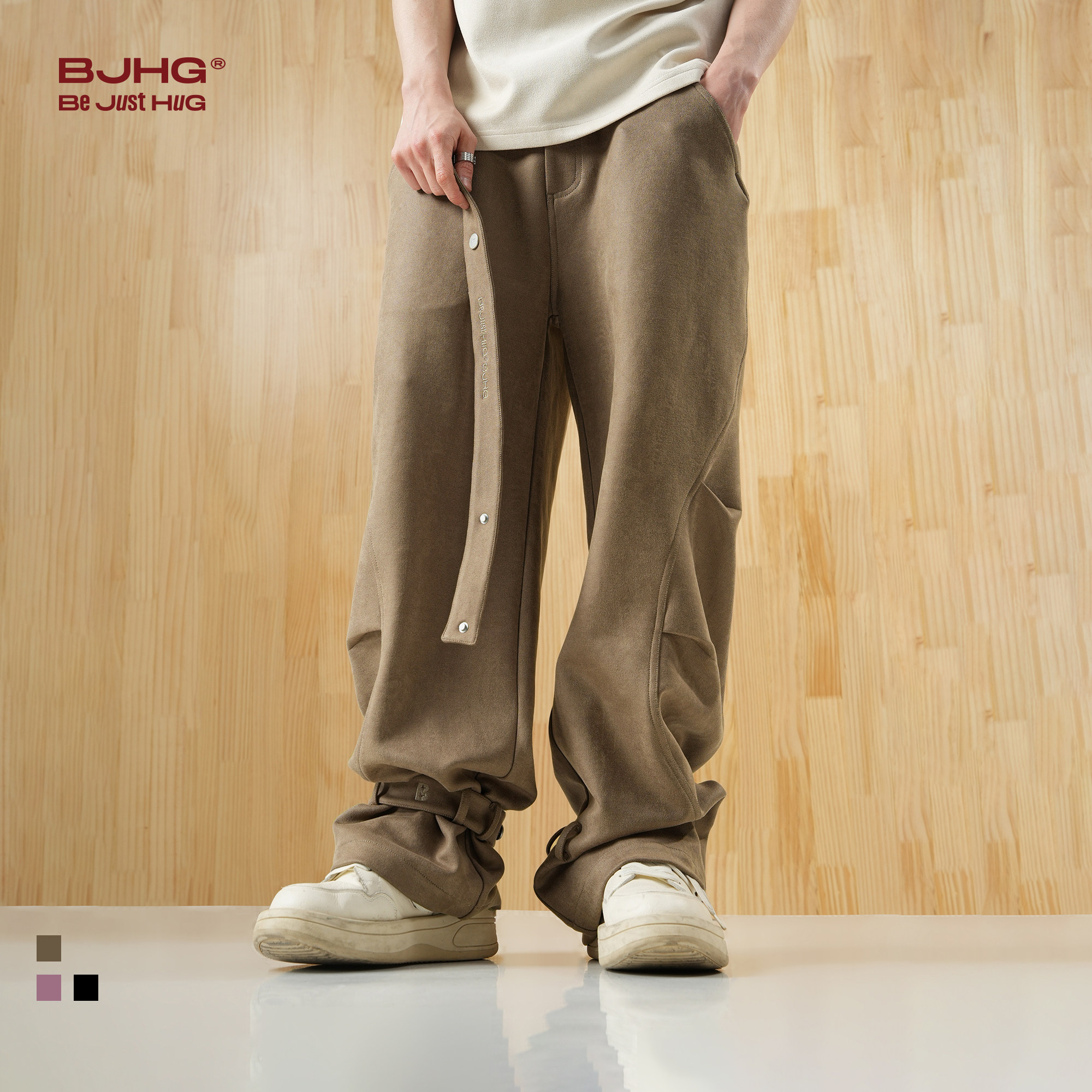 BJHG不计后果春季美式环保麂皮绒休闲裤子潮流男宽松直筒褶皱长裤