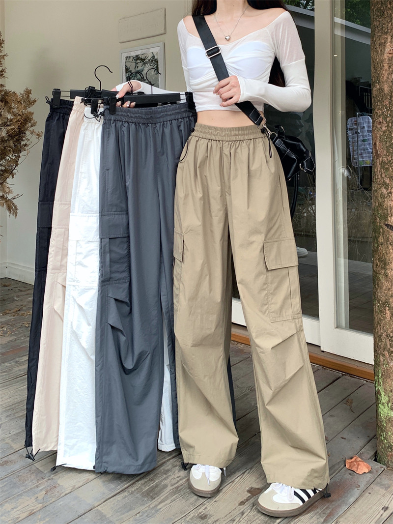 妈个鸡妈 ins美式速干褶皱工装裤子多口袋夏季休闲裤直筒男女宽松