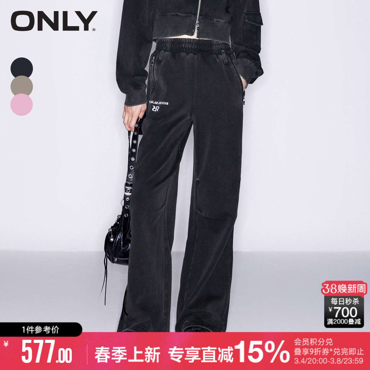 ONLY2024春季新款设计感时尚百搭褶皱设计做旧水洗休闲裤女