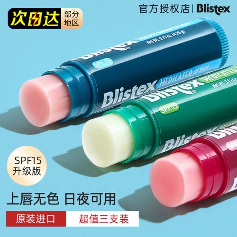 百蕾适美国Blistex碧唇清爽防晒浆果味润唇膏补湿滋润4.25g*3支