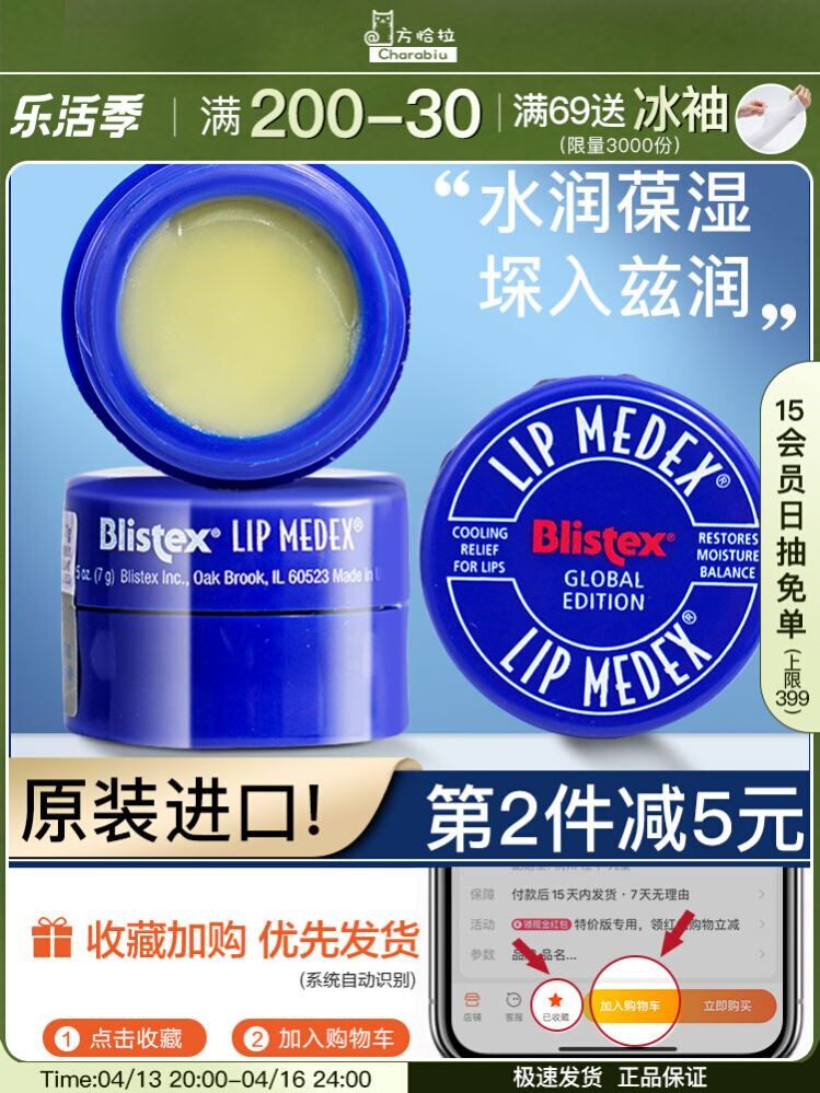 抖音美国Blistex碧唇小蓝罐滋润唇膏保湿口红打底唇膜油男女学生