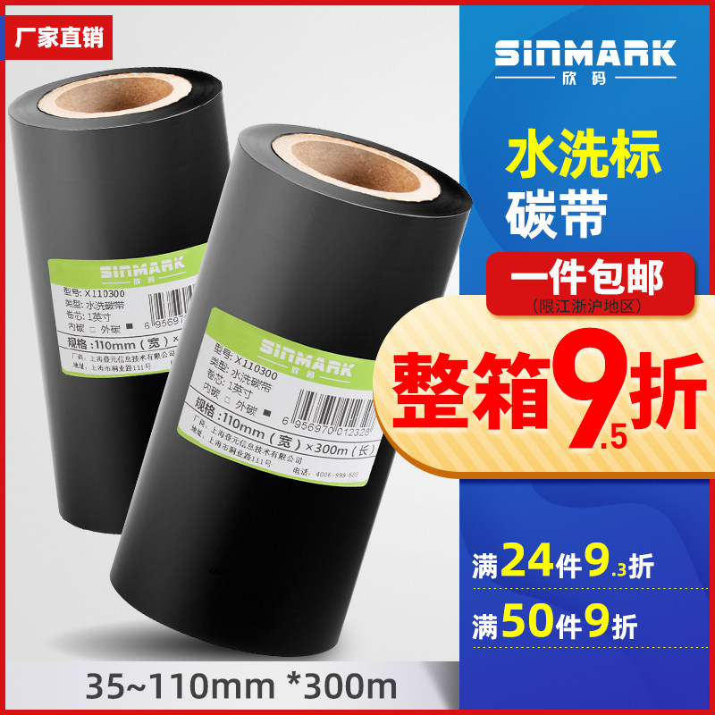 欣码水洗标碳带35~110mm 300m服装水洗唛无纺布缎带打印40 50 60 TSC 立象 佳博 科诚标签条码打印机色带