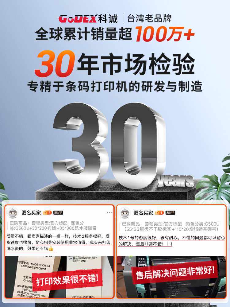 GODEX科诚G500U资产G530服装吊牌衣服合格证仓库条码珠宝热敏标签纸不干胶价格贴纸热转印水洗标唛碳带打印机