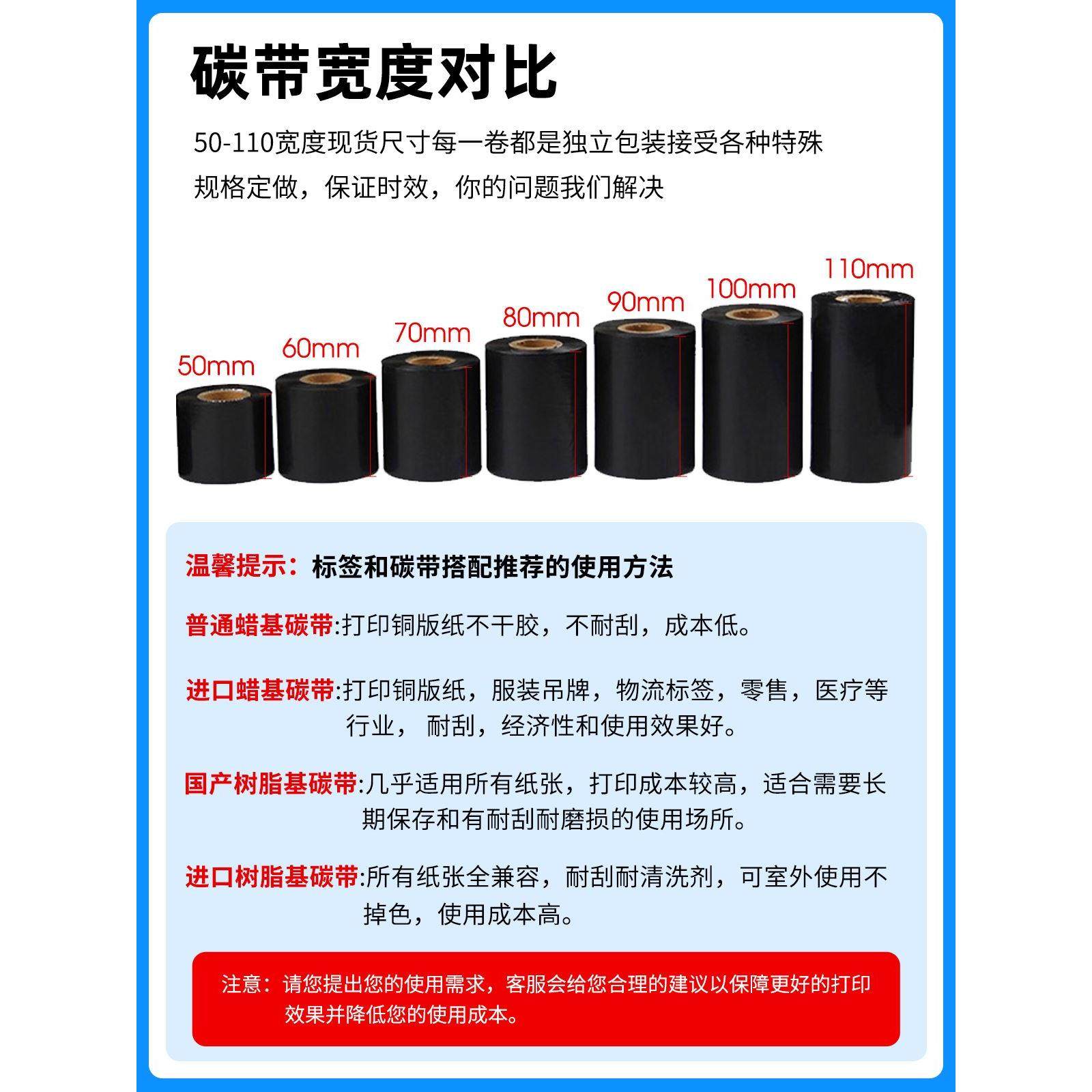 广优美蜡基碳带增强混合基碳带50~110mm 300m条码铜版标签纸打印机色带70 80不干胶碳带TSC 立象条码机碳带