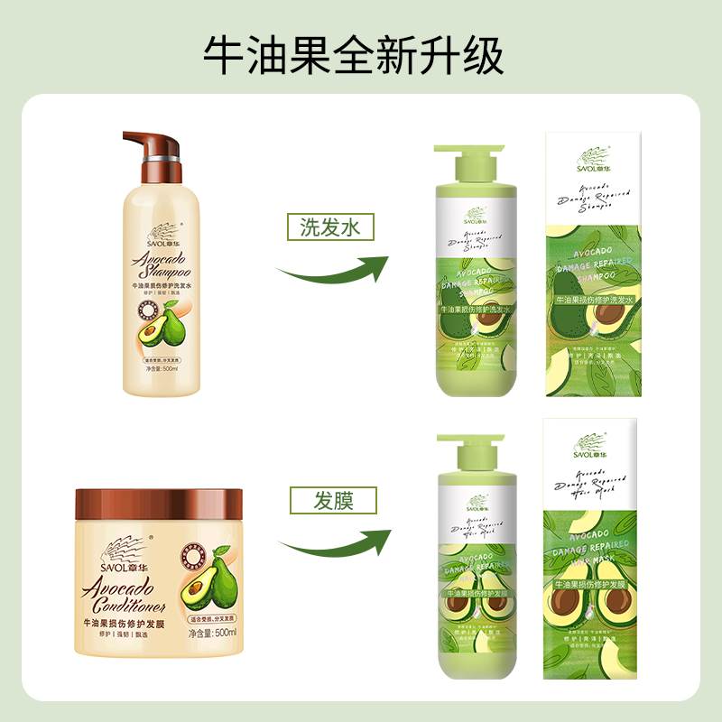 章华洗发水损伤修护柔顺改善毛躁香味持久控油牛油果露发膜护发素
