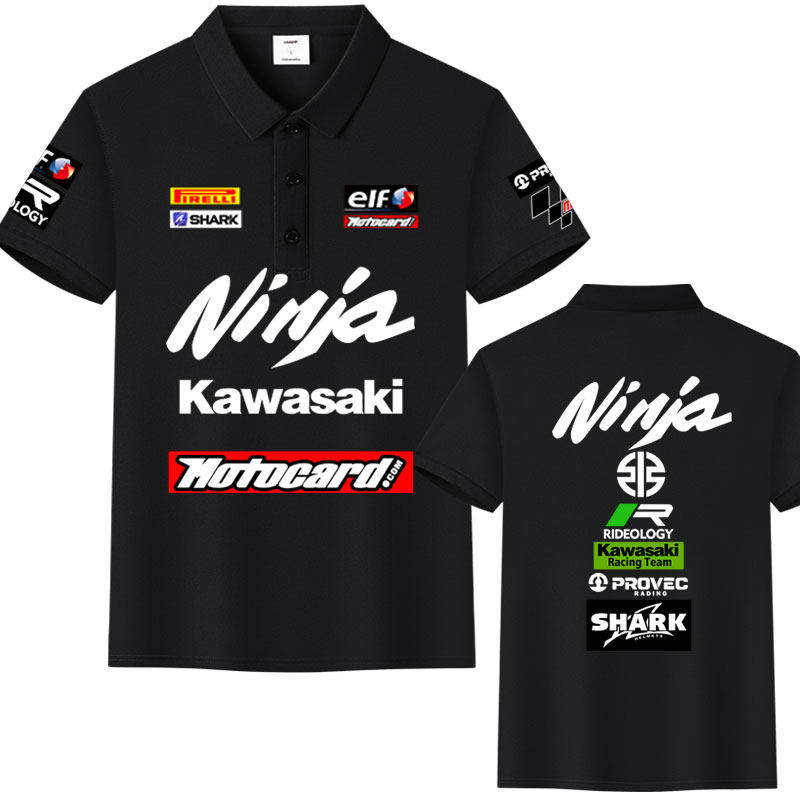 川崎摩托车冰丝棉POLO衫短袖t恤kawasaki忍者厂队重机车骑行服男