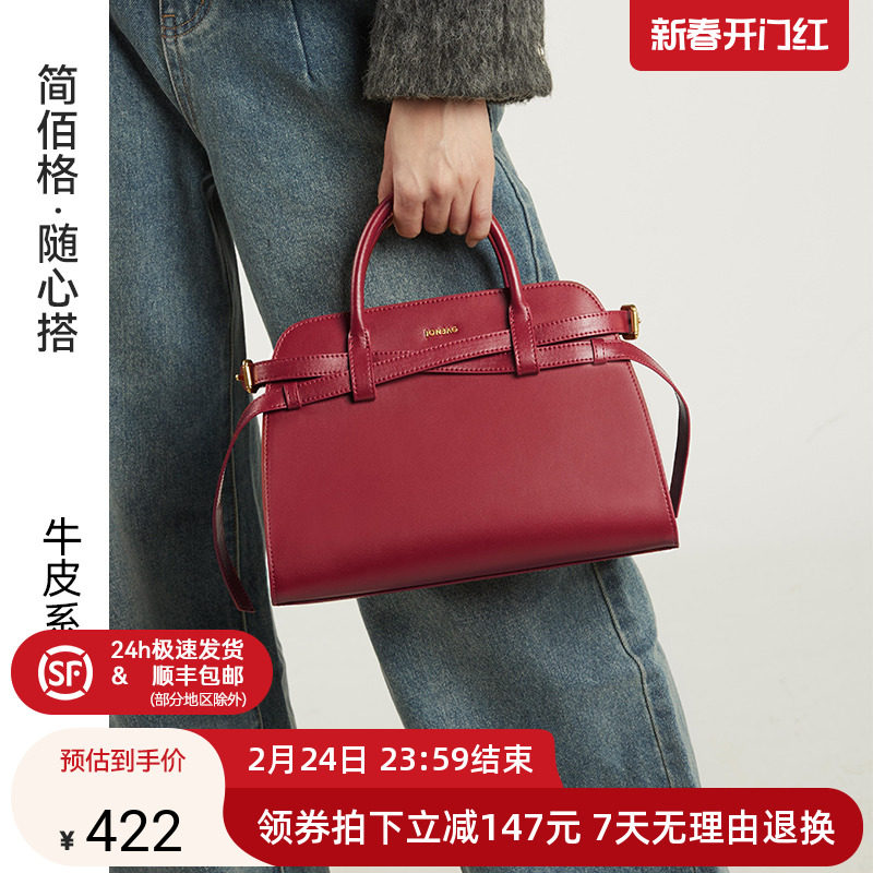 简佰格牛皮铂金包2024新款大气百搭手提红色新娘婚包时尚手提包女