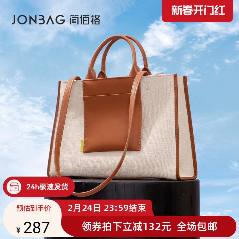 简佰格口袋包2024新款撞色托特包包大容量通勤风上课单肩手提女包