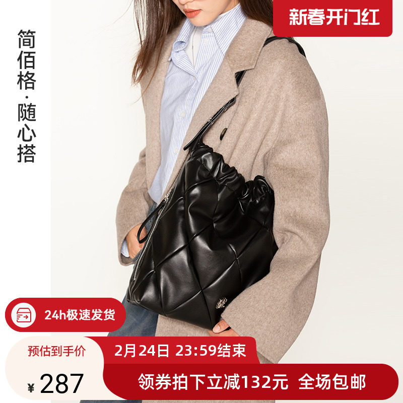 简佰格菱格托特包2024新款秋冬慵懒风包包女时尚百搭单肩通勤女包