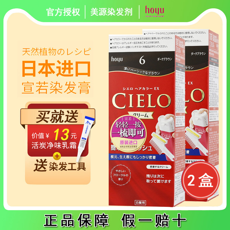 日本进口原装CIELO美源宣若染发剂霜植物纯女自己在家染发膏2盒装