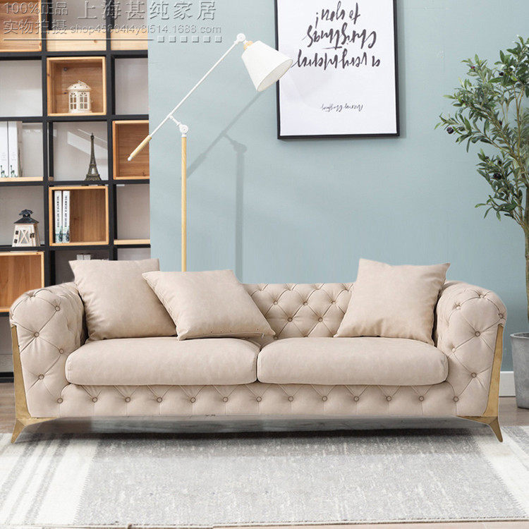 美式轻奢布艺三人沙发北欧简约网红拉扣单双人样板房沙发客厅整装