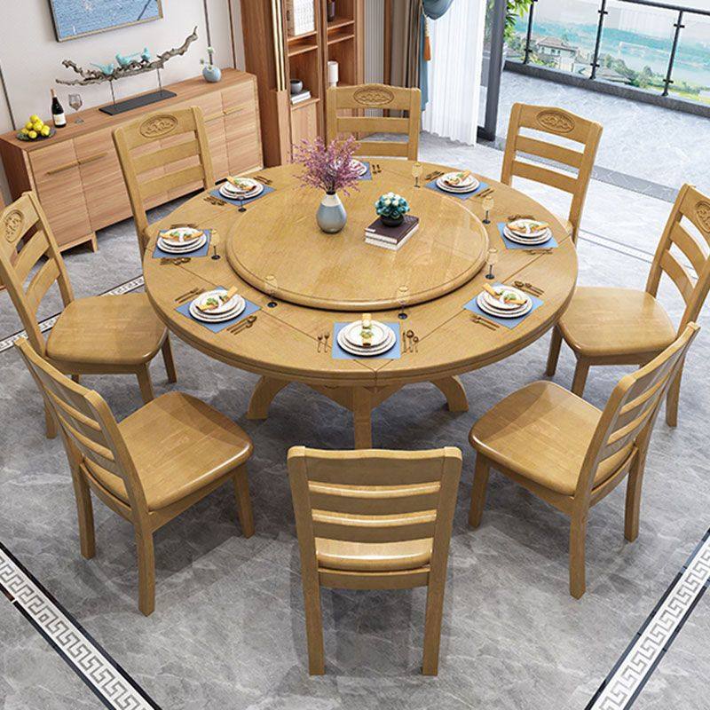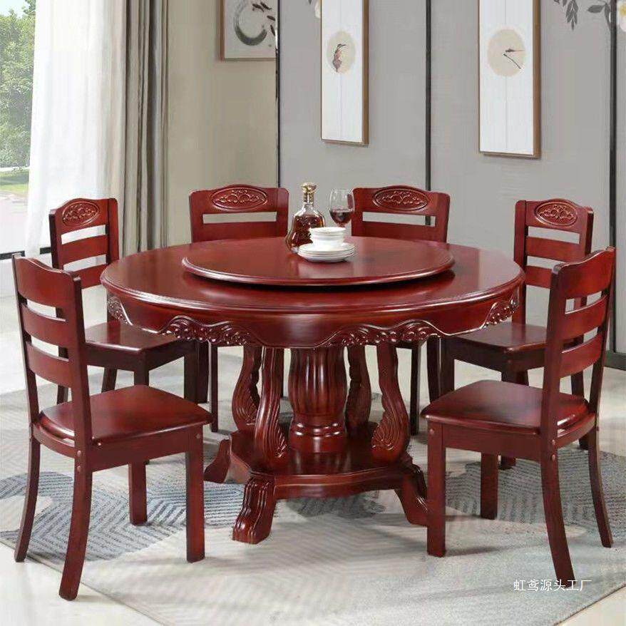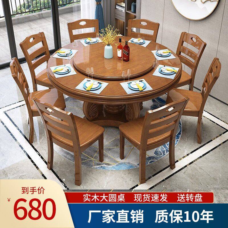 全实木圆餐桌椅组合大圆桌家用新中式饭店吃饭圆形带转盘原木桌子