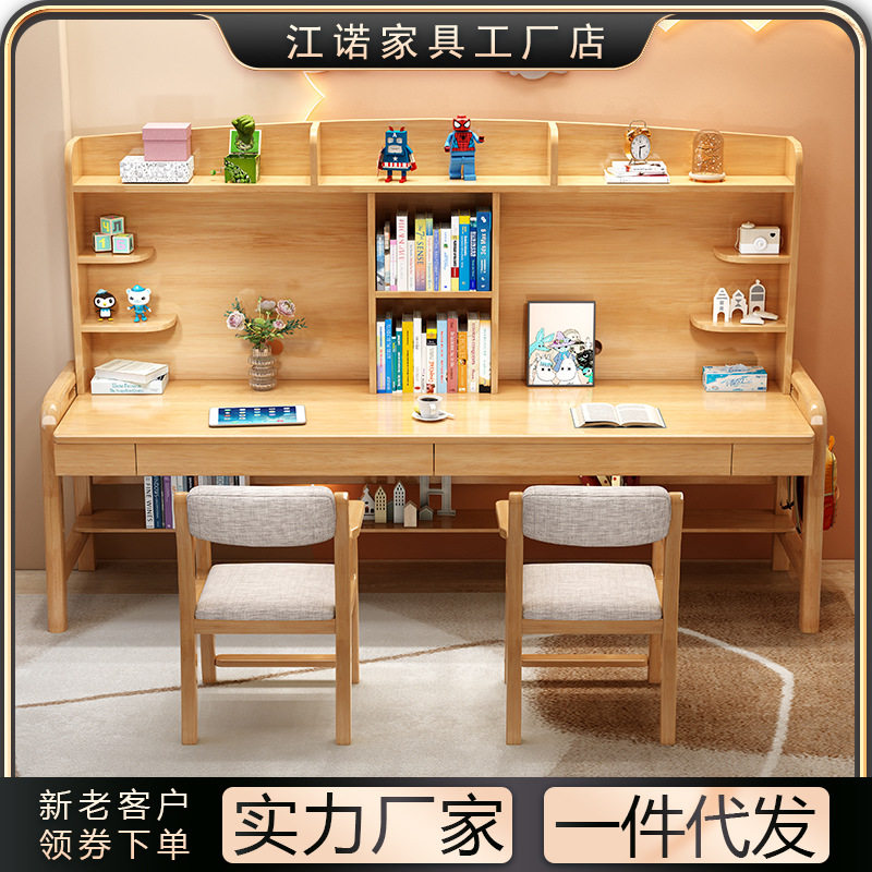 北欧双人实木书桌家用转角长条桌儿童学习桌子卧室桌椅学生电脑桌