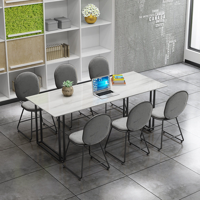 北欧大理石办公桌椅组合职员培训会议桌简约长条洽谈桌电脑桌子