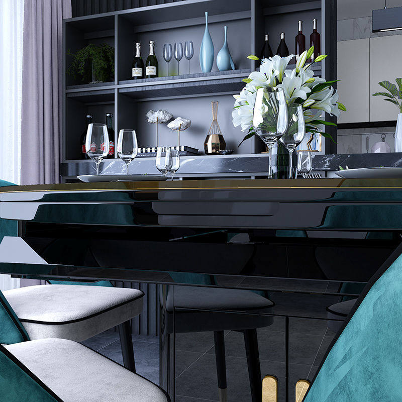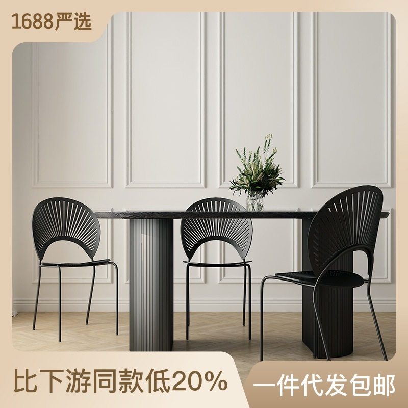 法式复古黑色实木餐桌桌椅组合样板间大理石餐桌椭圆形中岛台桌子