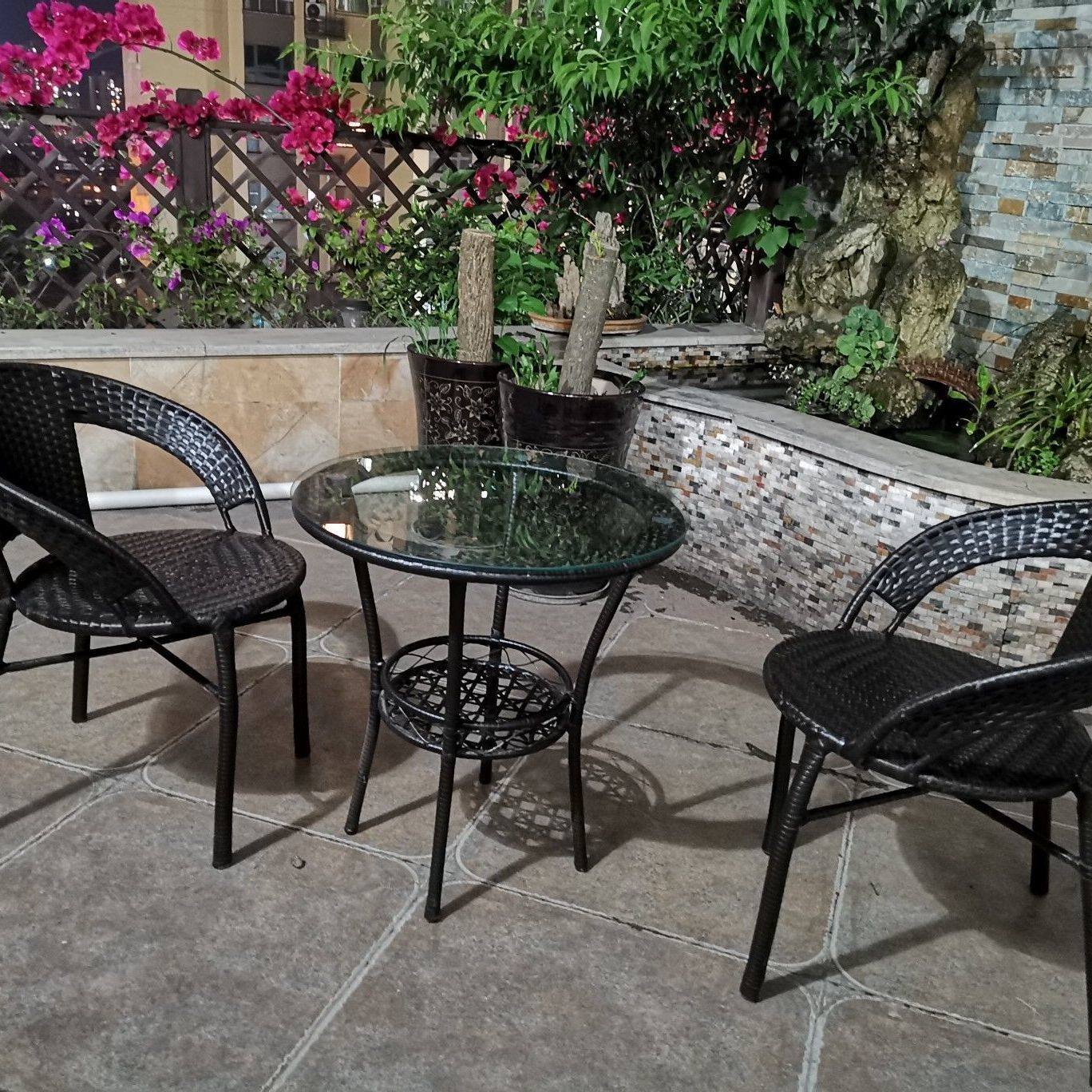 简约阳台小桌茶机玻璃茶几钢化玻璃圆桌子藤编小户型喝茶桌