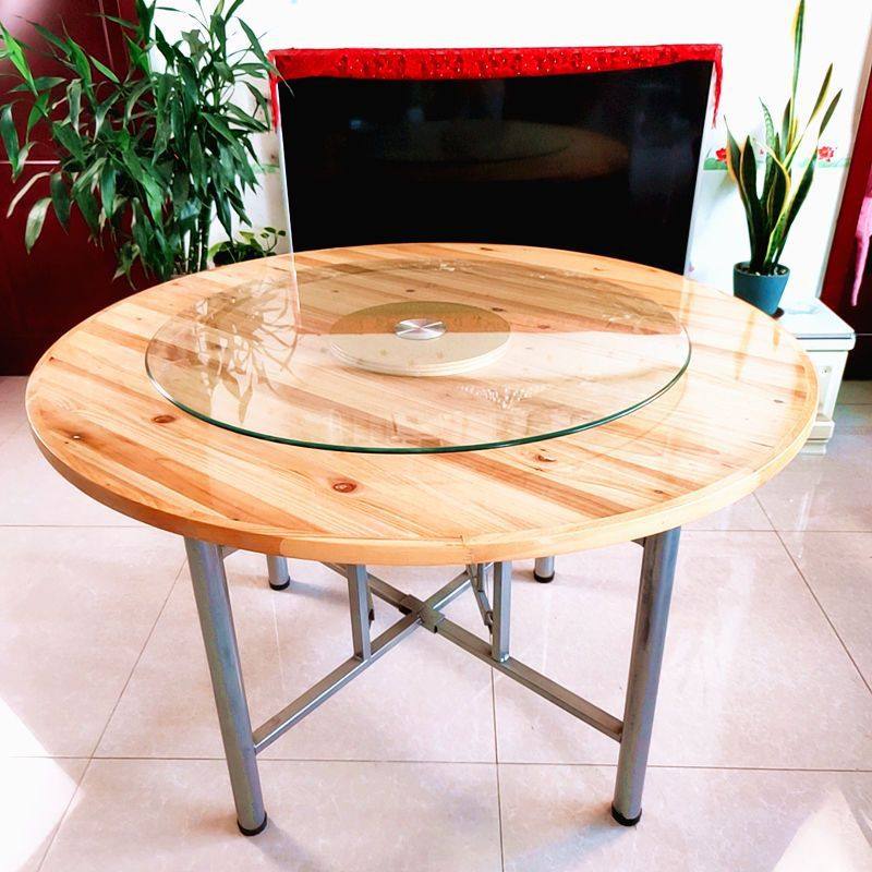折叠圆桌子家用吃饭实木酒店饭店大圆桌面餐桌8人杉木面板圆台面
