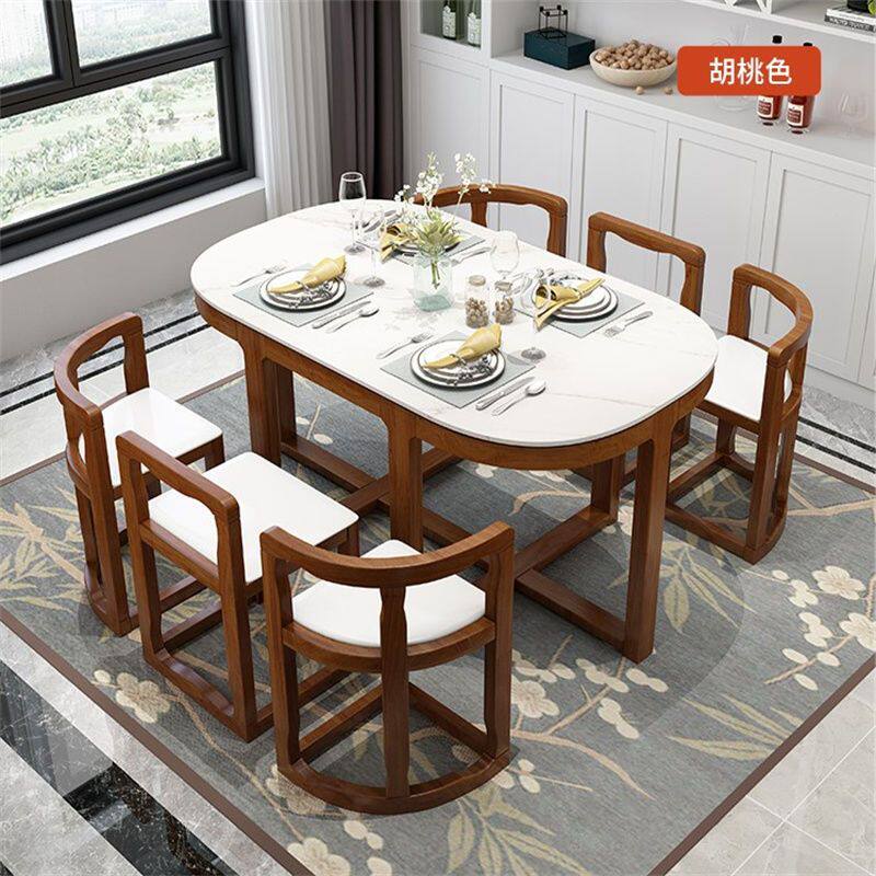 实木大理石岩板餐桌网红隐形省空间一桌六椅小户型椭圆形桌子