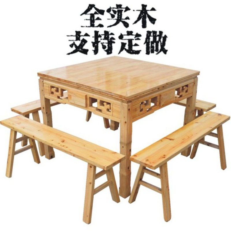 八仙桌原木柏木实木仿古餐桌椅组合四方桌经济型饭桌子带抽屉餐桌