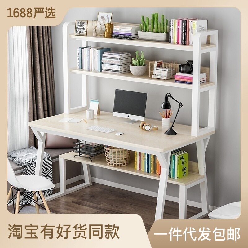 书桌书架一体电脑桌台式家用卧室学生学习双人写字桌简约办公桌子