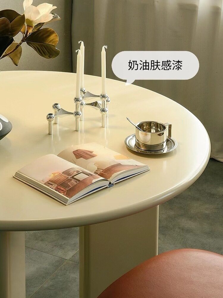 北欧圆形餐桌简约小户型阳台桌椅奶油系咖啡厅网红侘寂风休闲桌子