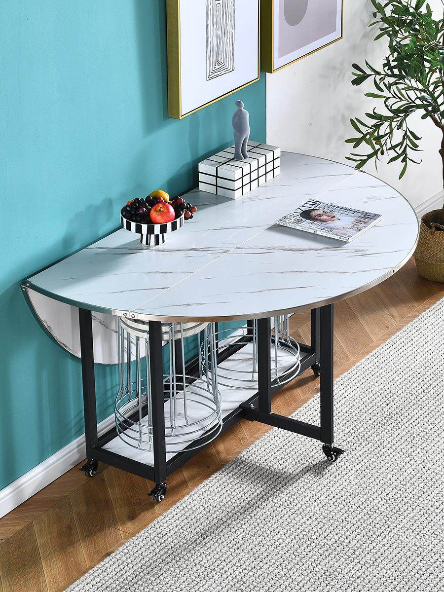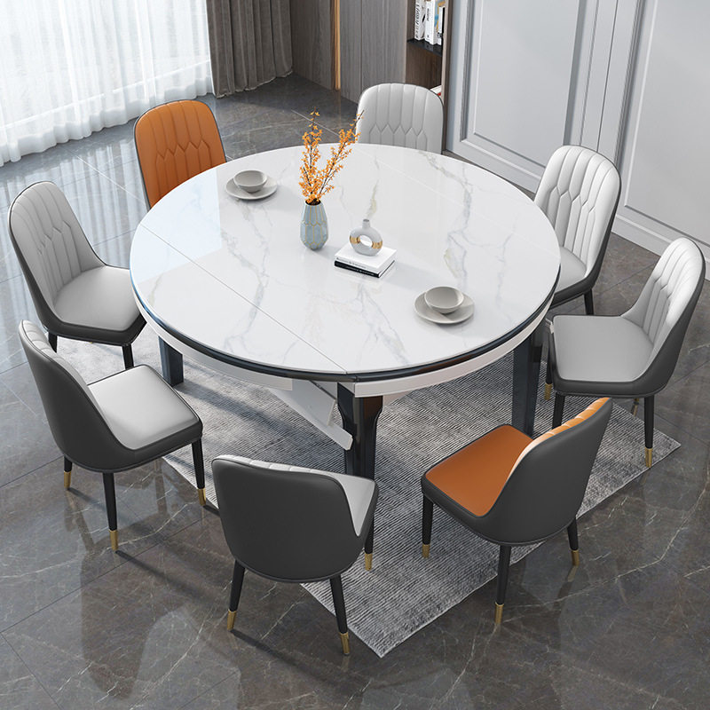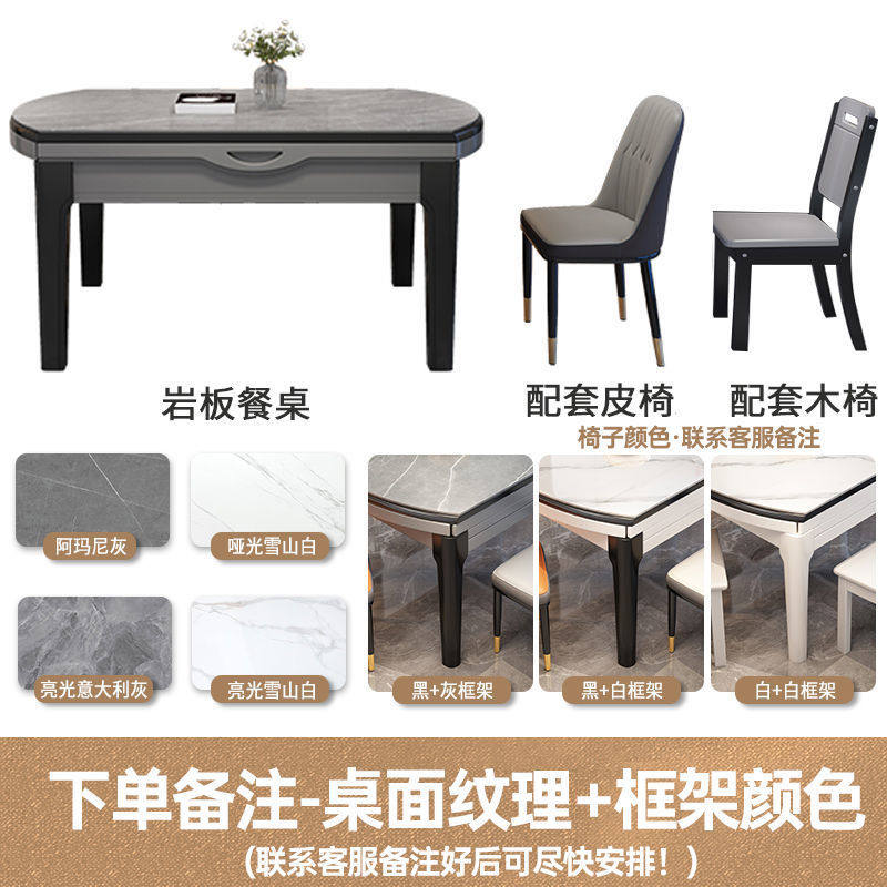 岩板餐桌椅组合家具方圆两用饭桌可伸缩折叠桌子家用亮光餐桌
