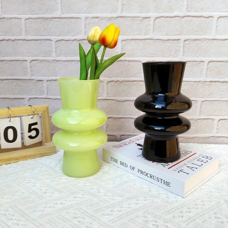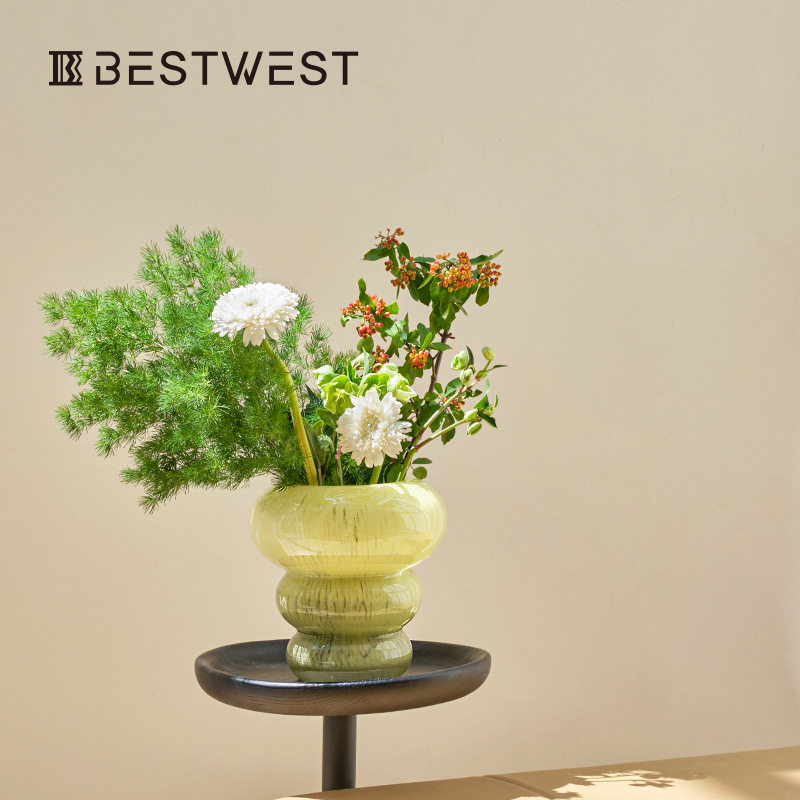 Best west 简约鹅黄色葫芦形三段式玻璃花瓶摆件家居样板间装饰品
