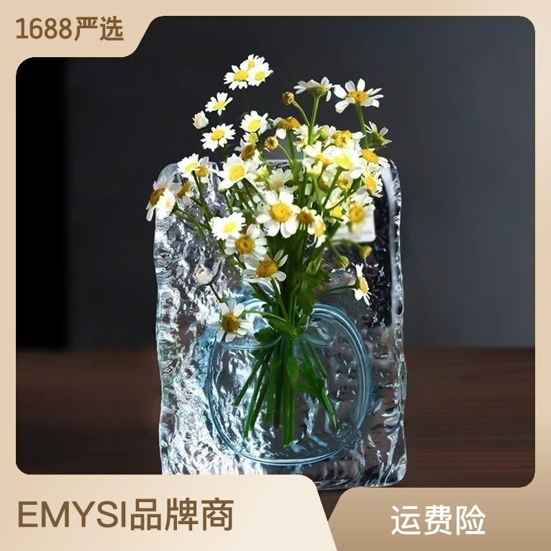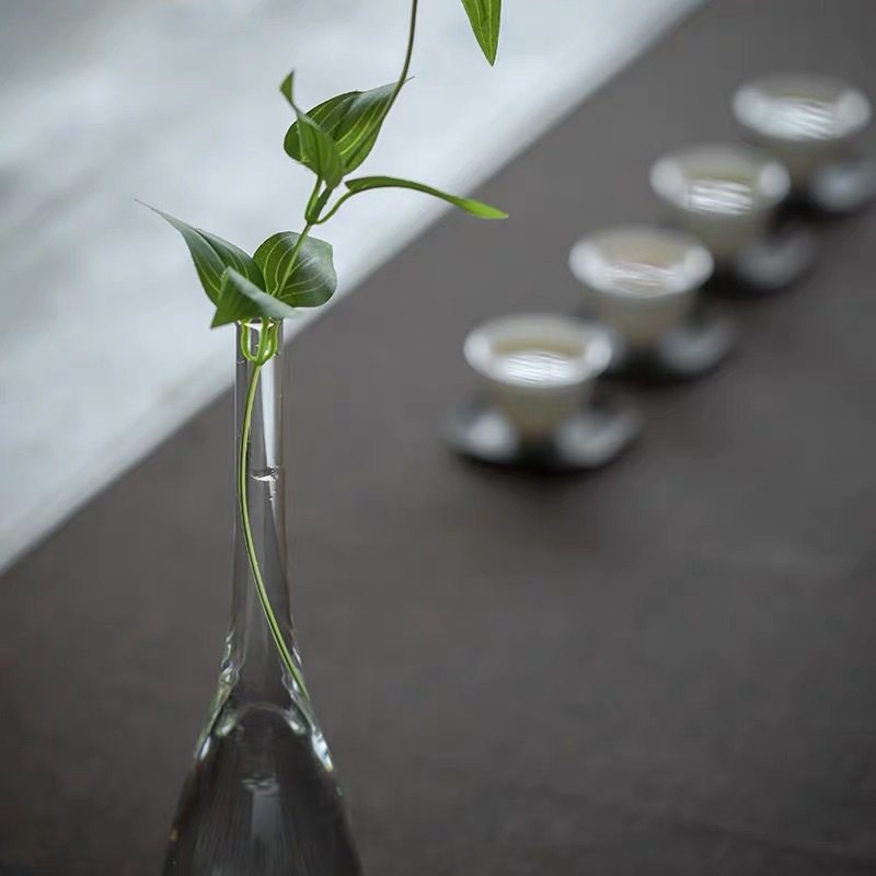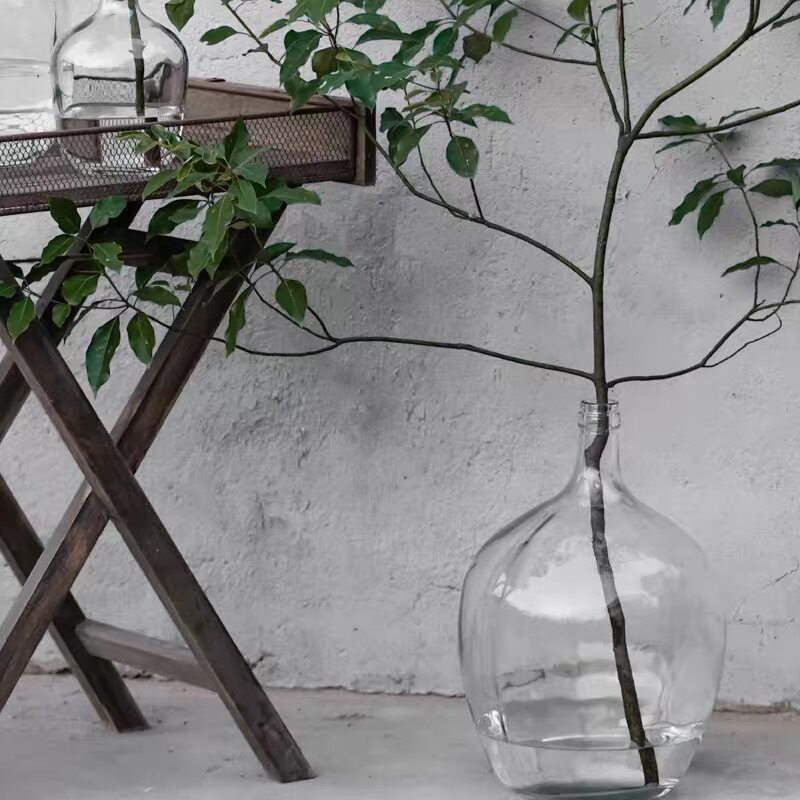 日式梅瓶透明玻璃花器禅意插花花瓶摆件小水培水养花艺干花