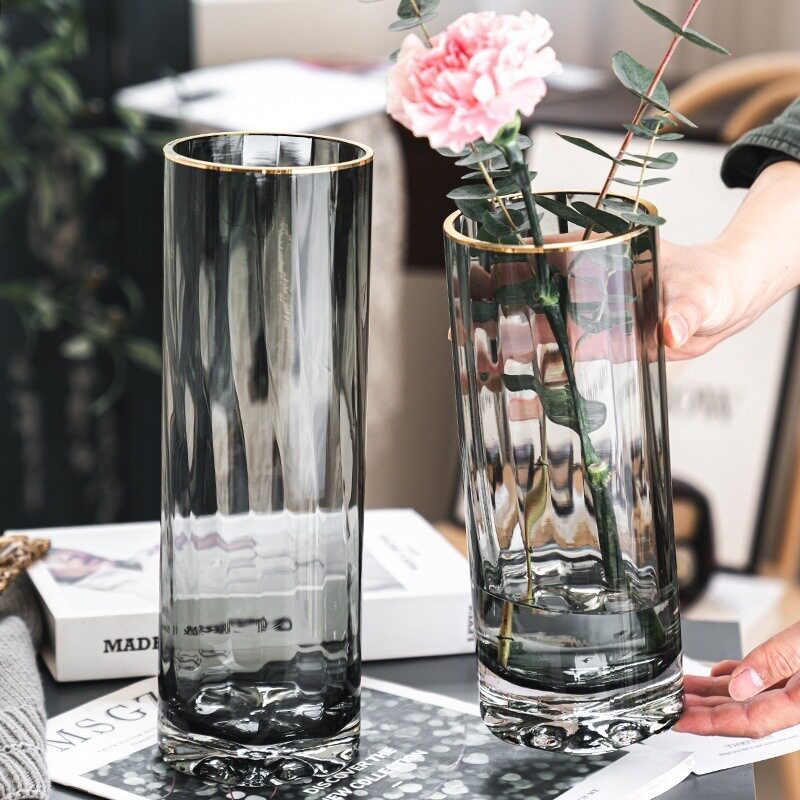 FUGUSENLIN法式复古轻奢直筒透明玻璃干鲜插花水养培仿真花器花瓶