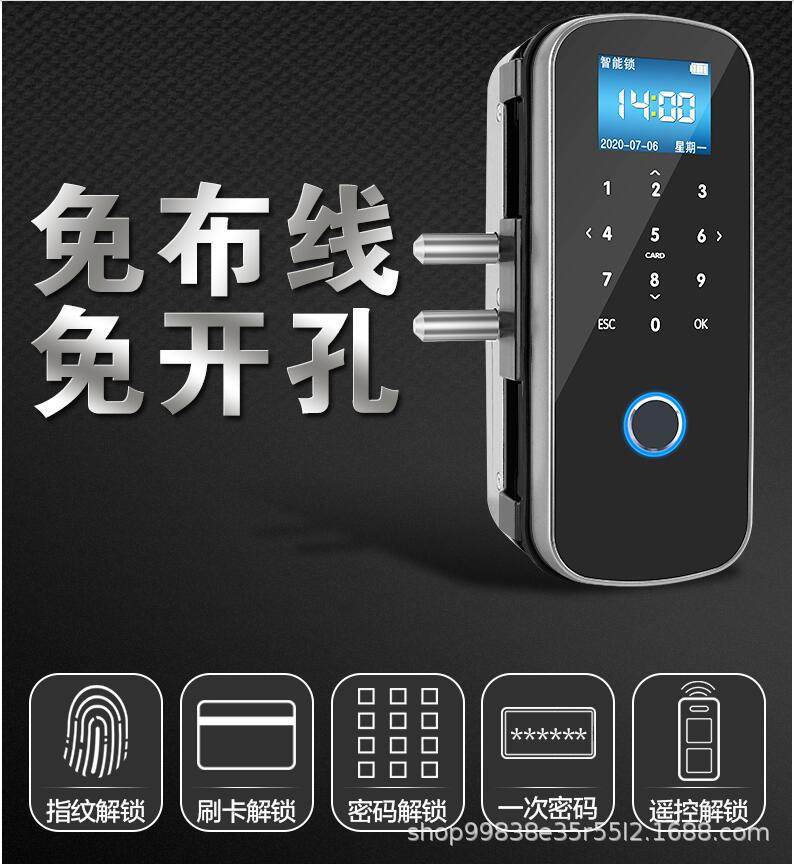 办公室免开孔玻璃门指纹锁 商铺指纹密码刷卡金属门木门密码锁
