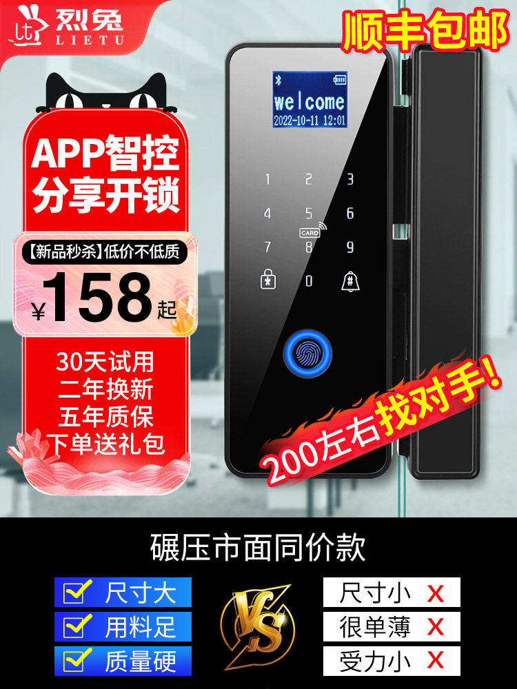 11V4办公室玻璃门锁指纹锁免开孔单门双开门智能门禁锁无框有