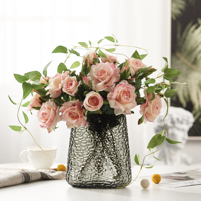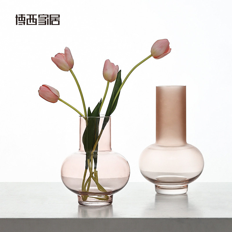 博西家居 透明粉色玻璃水培小花瓶轻奢摆件 家居客厅花器软装饰品