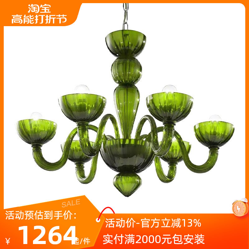 全美一丁法式餐厅复古紫色玻璃吊灯具现代简约创意客厅绿色灯米兰