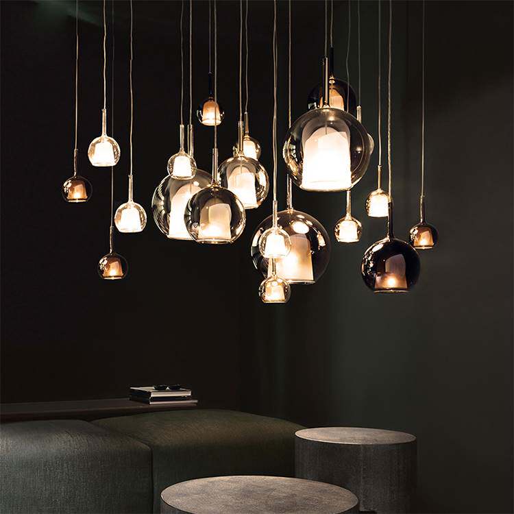 米兰设计师餐厅泡泡玻璃多头吊灯楼梯卧室床头餐桌吊灯圆形彩色灯