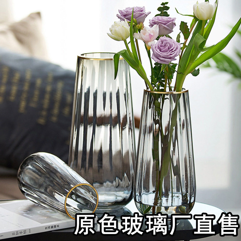北欧简约创意轻奢玻璃花瓶透明水养富贵竹百合玻璃插花瓶客厅