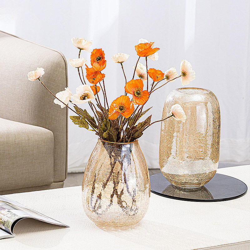 [大号玻璃]彩色花瓶冰裂纹鲜花插花摆件家居客厅餐厅玻璃装饰品