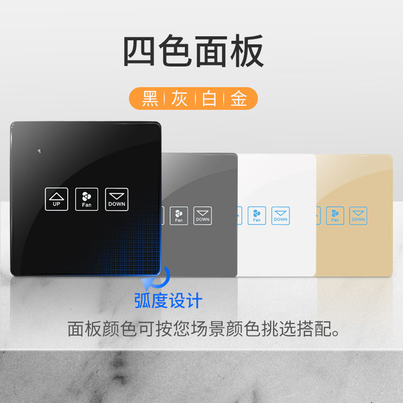 C4正尚智能触摸调速WIFI智能开关远程控制黑色钢化玻璃面板