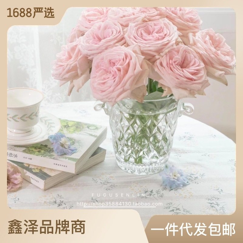 ins法式中古玻璃花瓶摆件客厅水培鲜花插花奶油网红装饰花器