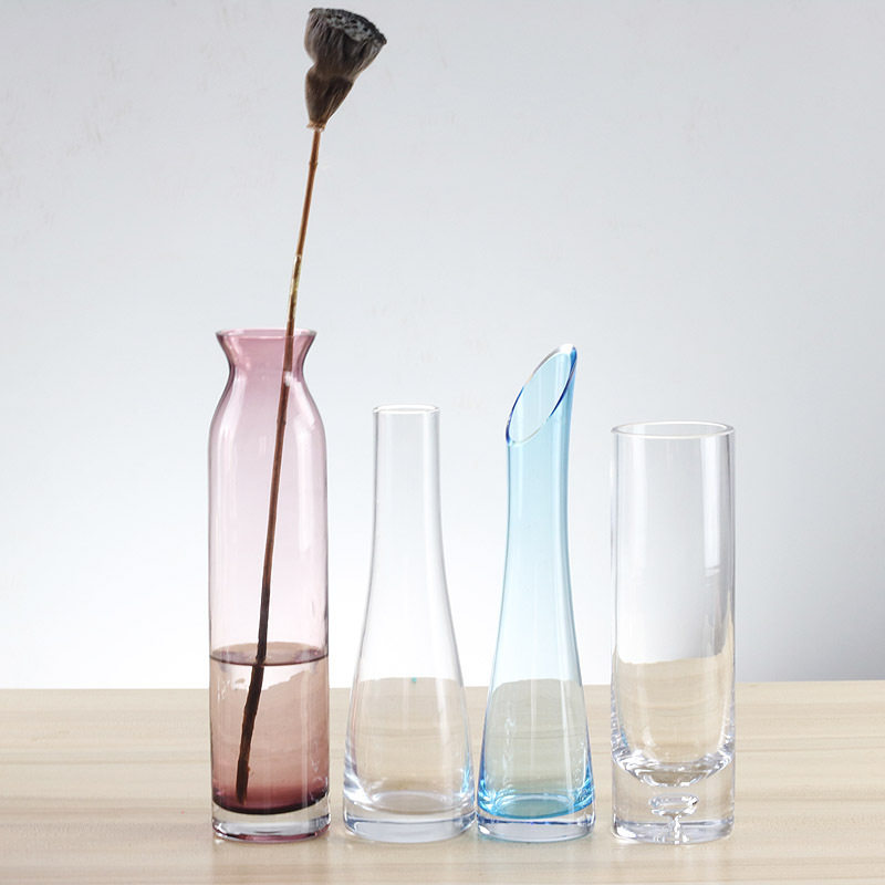 GJU8欧式花瓶小清新玻璃透明 简约彩色细长百合小号干花装饰桌面