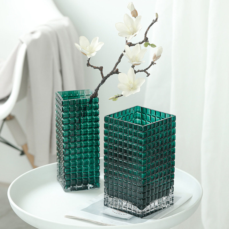 方形轻奢彩色玻璃花瓶水培植物鲜花客厅桌面餐桌花瓶玻璃摆件创意